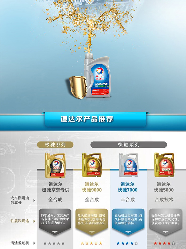 Total(Total)快速駆7000半合成オーラル潤滑油5 W 30 SN/GF-5級1 L(新古い包装はインタラクティブにランダーに出荷します)
