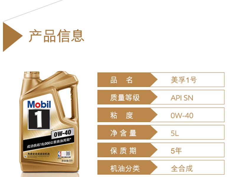 Mobil(Mobil)Mobil 1号銀Mobil金Mobil合成オー自動車エンジオ自動車潤滑油小金美小銀ドゥルMobil 1号SN 0 W-40 1 Lx 4セント