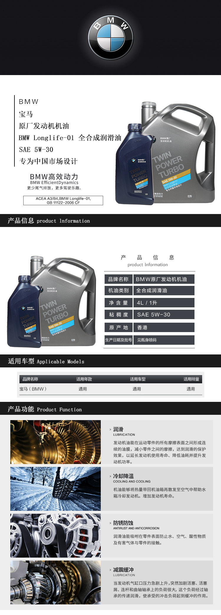 bmw(BMW)元工場全合成グリスエム5 W-30 bmwX 5 28 i/X 6 28 i/5系入力/3系20 i/7系730 Li/X 1 20 i/6 GT 1 L