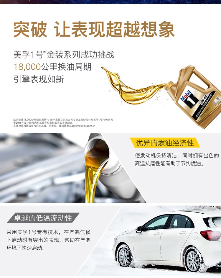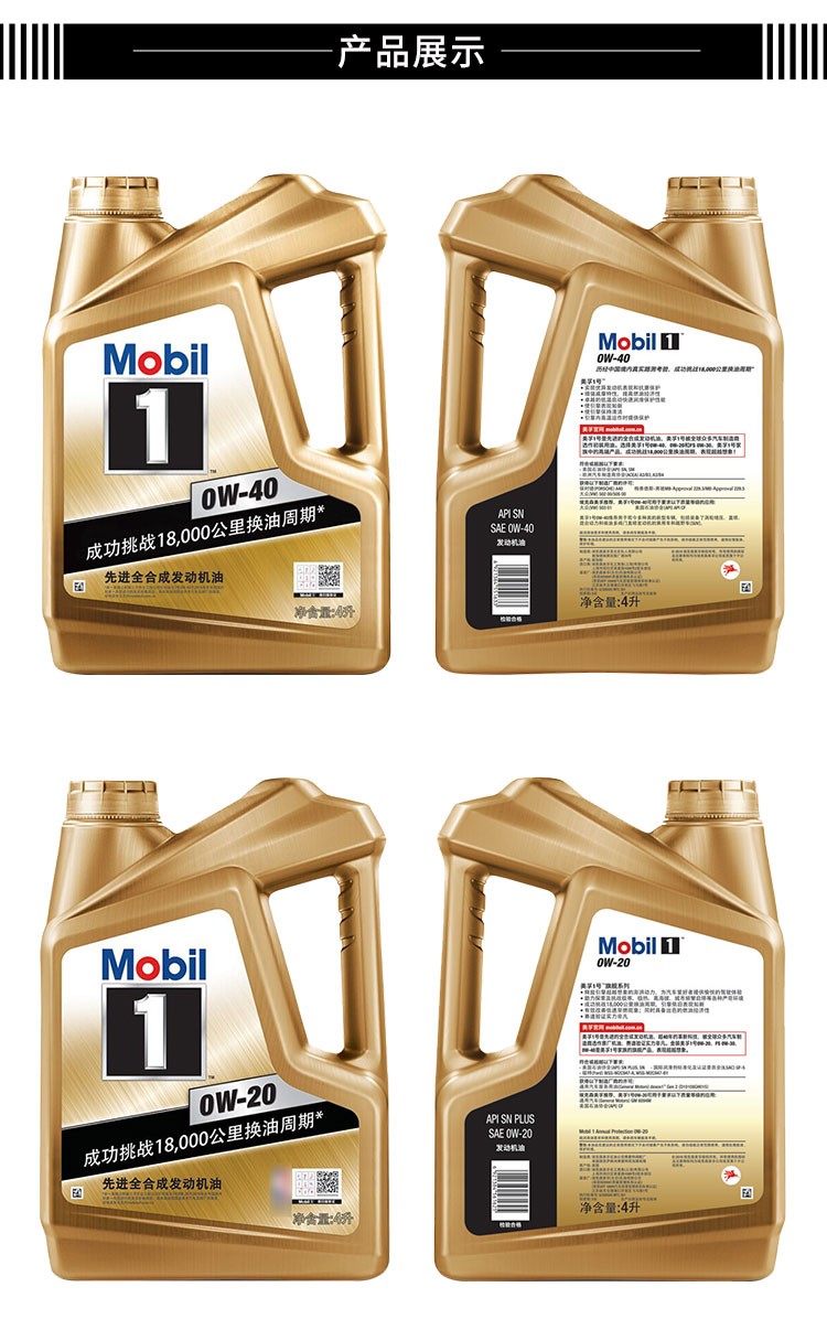 Mobil(Mobil)金装Mobil 1号エンジオ合成オイ自動車エンイオン潤滑油金Mobil 1号SN級0 W-40 L