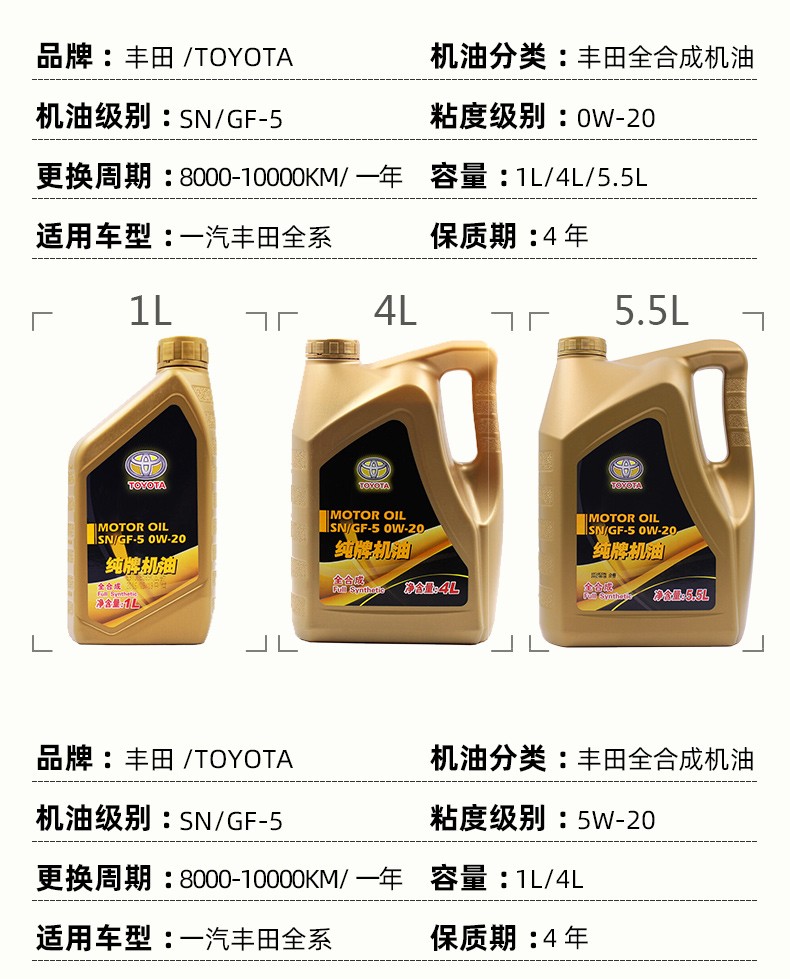TOYOTA(TOYOTA)一汽TOYOTA元工厂専用オーラル润滑油カロラクライウハイランダヴェジッツィヒ4プロラドライト