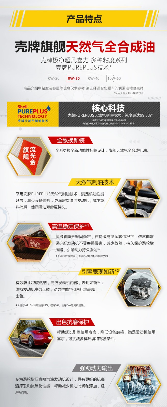 Shell(Shell)金装極浄超常喜力天然ガスガスガス合成オルリックスUltra 0 W-30 SN級10 Lセト