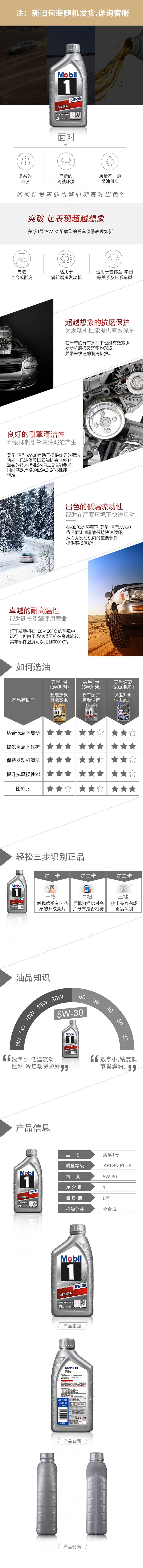 Mobil(Mobil)Mobil 1号合成オル5 W-30 SNレベル1 L