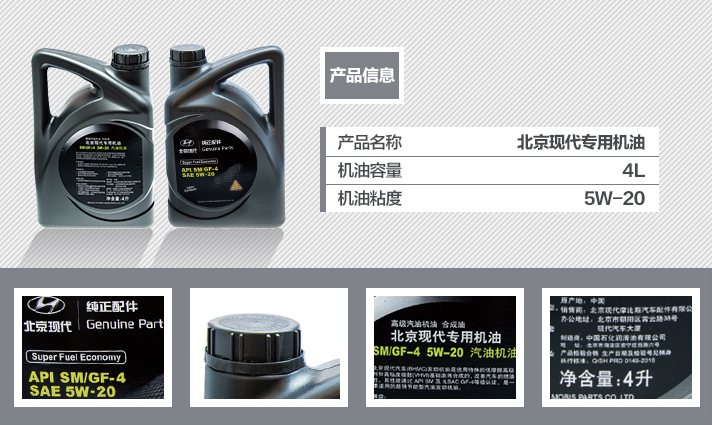 北京现代4 S店直供元工场専用オーロラド/ix 35/途中胜/快动/朗动/名などの适用コーレス図:5 W 30オーイ4 L+赠呈机フル