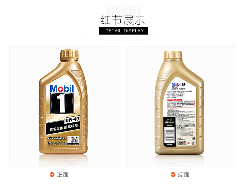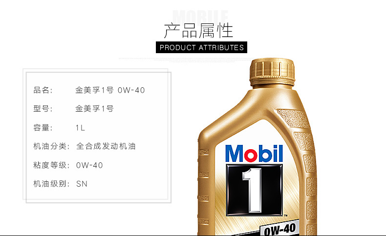 Mobil(Mobil)Mobil 1号の自動車オーイの潤滑油車用エンジオの潤滑油金Mobil 1号の全合成は0 W-40 1 L*4 SN級です。